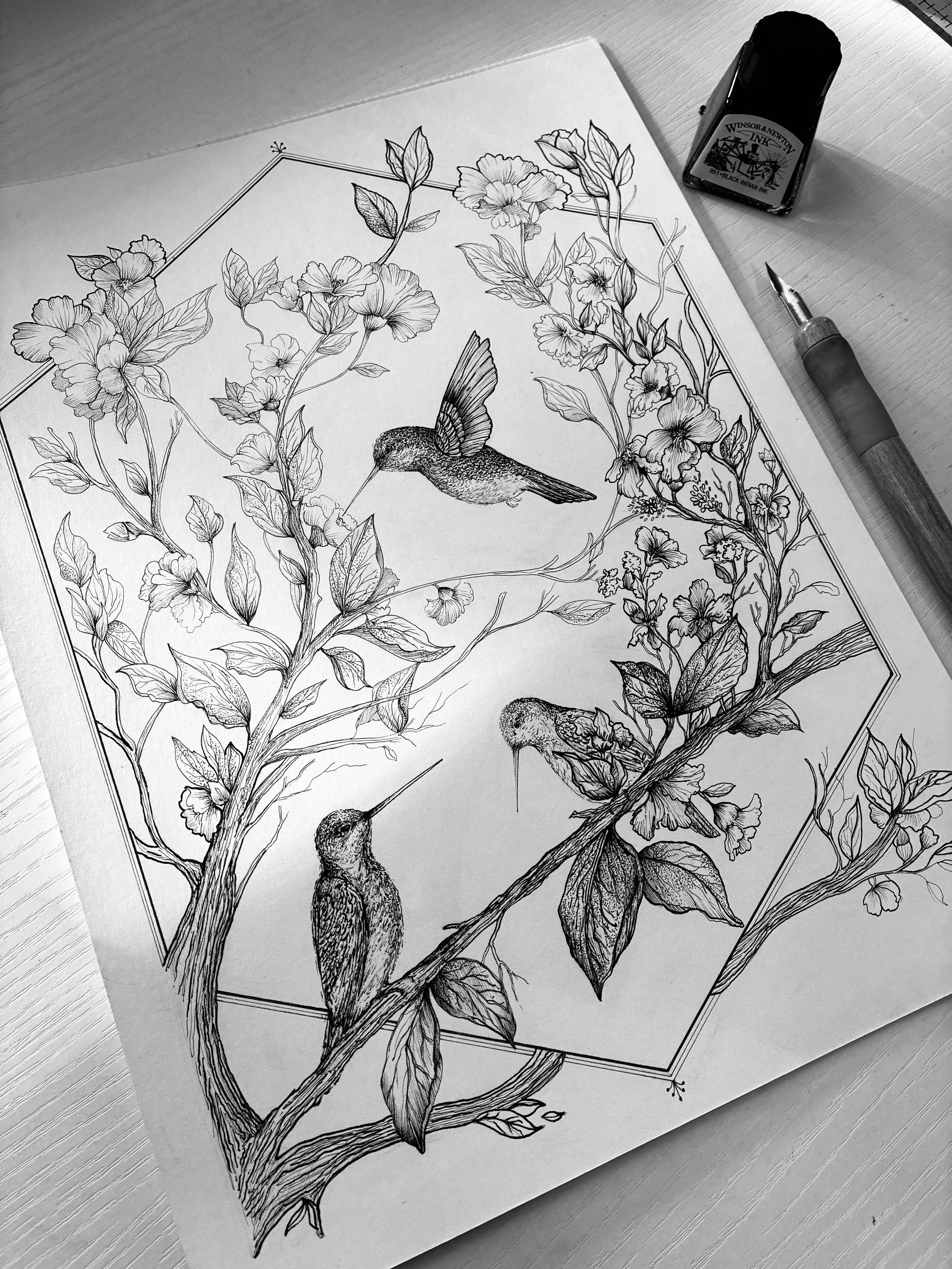 Hand-drawn artwork in classic pen & ink.